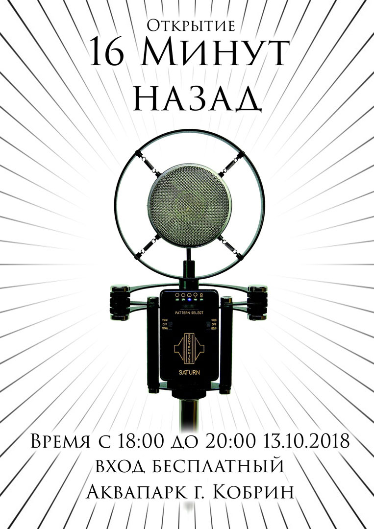 В субботу, 13 октября, в Аквапарке г. Кобрина открывается площадка для начинающих творческих личностей. Первая встреча в рамках творческого вечера «16 минут назад» состоится на втором этаже аквапарка. Планируется проводить такие встречи каждый месяц. Площадка создана для начинающих музыкантов, танцоров, поэтов, художников, где каждый может показать свой талант. Служба информации Мой Кобрин