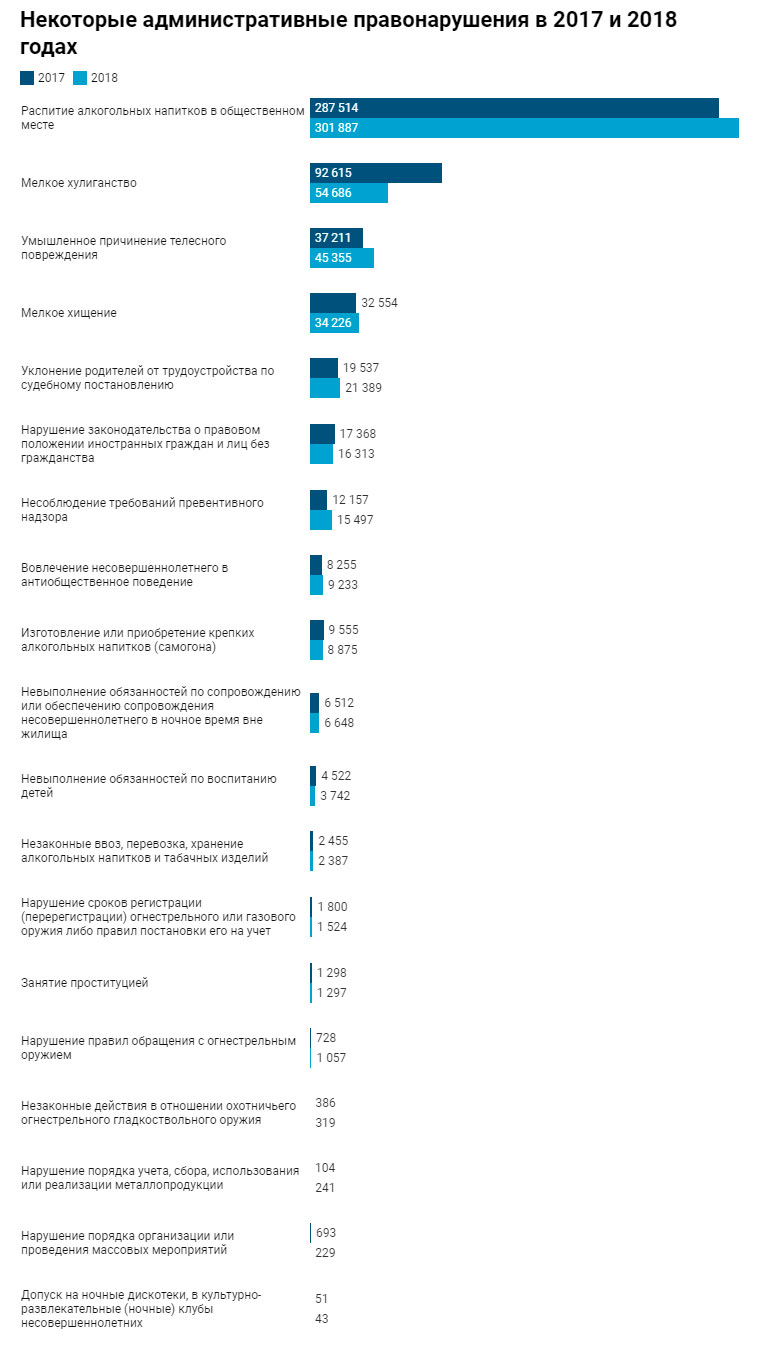 16 декабря президент Беларуси собрал совещание, где подверг критике палочно-галочную систему привлечения белорусов к административной ответственности. По его словам, за неполные пять лет зарегистрировано 16 млн нарушений, за совершение которых к ответственности привлечены около 3,5 млн граждан — более 50% всего трудоспособного населения. TUT.BY наглядно показывает за что штрафуют белорусов. К сожалению, на сайте МВД предоставлена статистика по административным […]