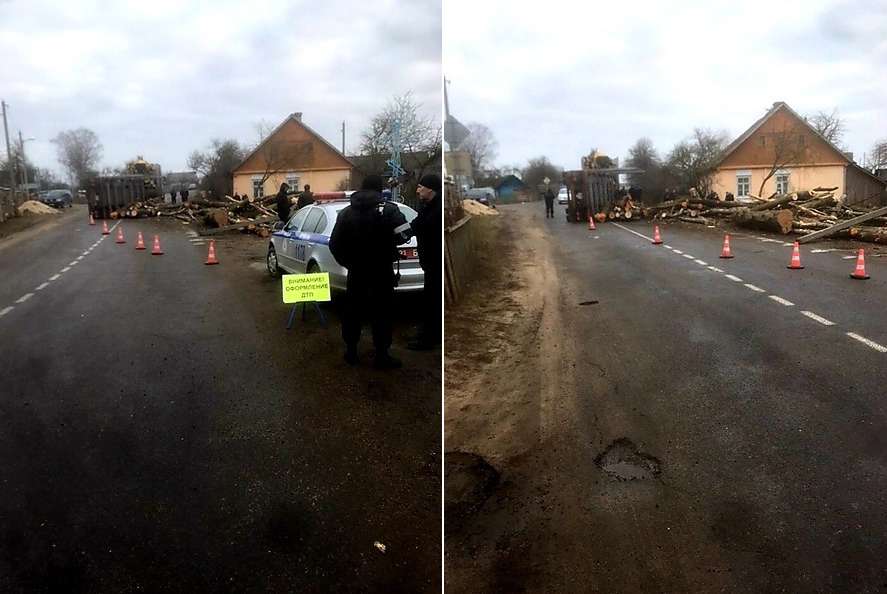 В Ружанах перевернулся лесовоз. Погиб 6-месячный ребёнок и 44-летняя женщина