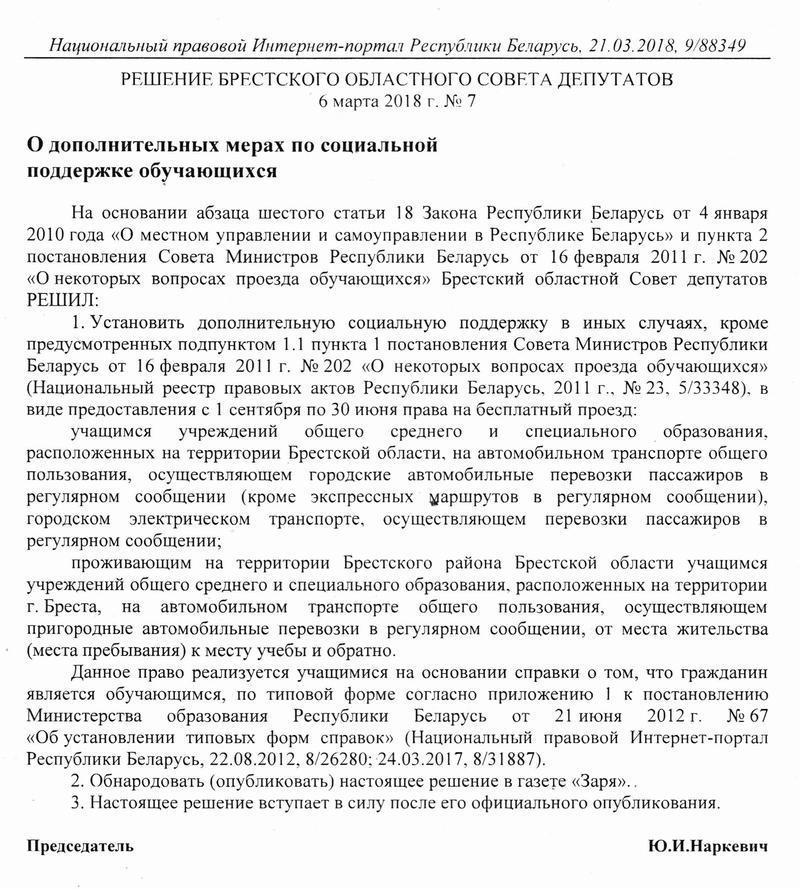 Согласно решению Брестского областного совета депутатов от 06.03.2018 №7 «О дополнительных мерах по социальной поддержке обучающихся» для учащихся учреждений дополнительного образования предоставляется право с 1 сентября по 30 июня на бесплатный проезд в городском транспорте. Данное право реализуется учащимися на основании типовой справки о том, что гражданин является обучающимся учреждения дополнительного образования. Образец […]