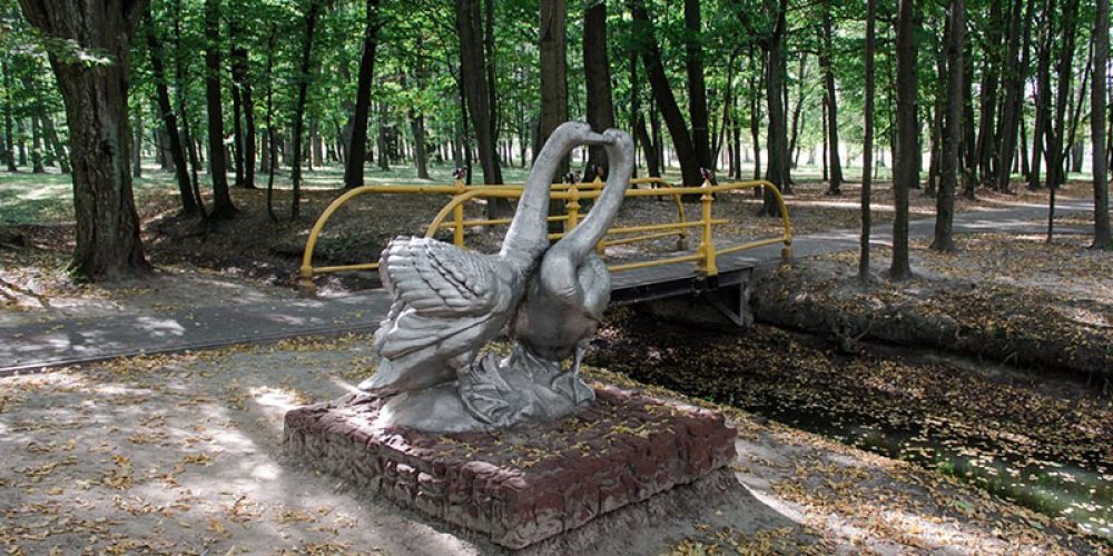 И все-таки есть в Кобрине советский скульптурный «антиквариат». В городском парке имени Суворова сохранилась любопытная группа – целующаяся лебединая парочка размером со взрослого человека. Вписались птицы в парковый антураж очень даже гармонично: застыли на небольшом склоне под сенью старых деревьев, под ними – старый пруд. И тут же мостик, на перилах которого примостились миниатюрные модели пушек. Идиллический сюжет буквально притягивает к себе местных влюбленных.
